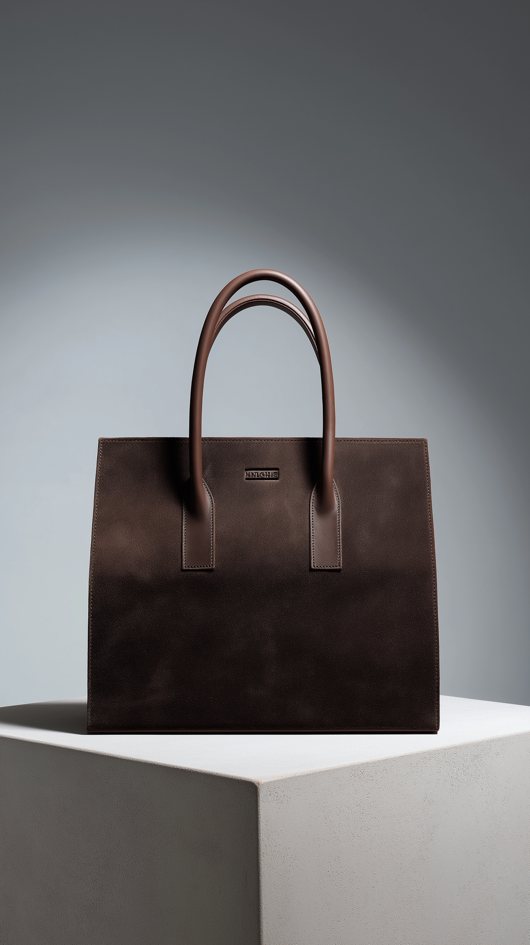 Step into understated luxury with this elegantly structured rectangular handbag, crafted in premium espresso brown suede. The clean lines and minimalist silhouette highlight the soft, velvety texture of the suede, while the double-stitched leather handles offer a rich tonal contrast and exceptional durability.