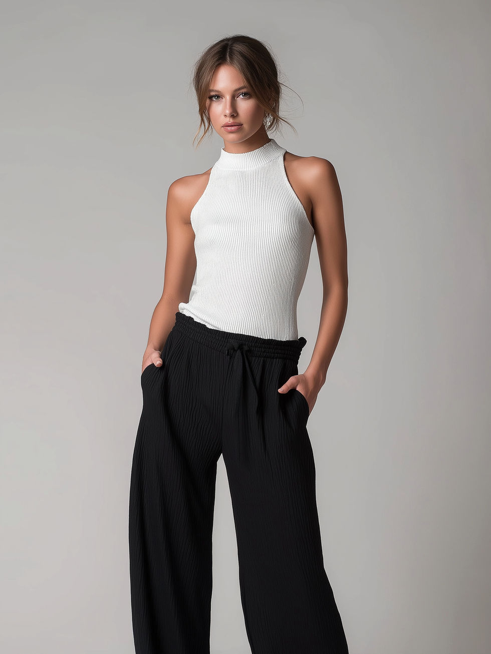 Designed to transition from daytime chic to evening sophistication, this tank is your modern wardrobe essential—soft, structured, and sensationally refined.